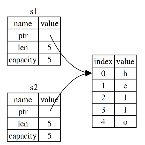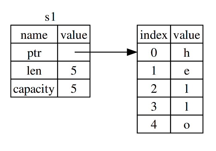 my_name: String last_name: &str [––––––––––––] [–––––––] +–––+––––+––––+–––+–––+–––+ stack frame │ • │ 16 │ 13 │ │ • │ 6 │ +–│–+––––+––––+–––+–│–+–––+ │ │ │ +–––––––––+ │ │ │ │ │ [–│––––––– str –––––––––] +–V–+–––+–––+–––+–––+–––+–––+–V–+–––+–––+–––+–––+–––+–––+–––+–––+ heap │ P │ a │ s │ c │ a │ l │ │ P │ r │ e │ c │ h │ t │ │ │ │ +–––+–––+–––+–––+–––+–––+–––+–––+–––+–––+–––+–––+–––+–––+–––+–––+